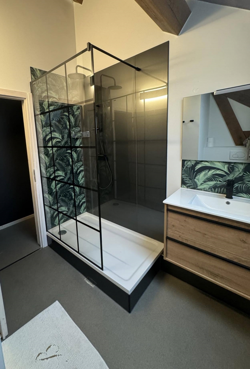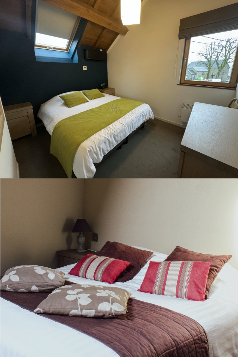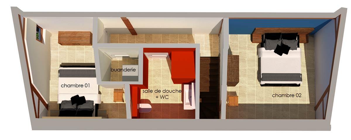 • 2 chambres doubles avec une salle de bain équipée de lavabo, douche et wc