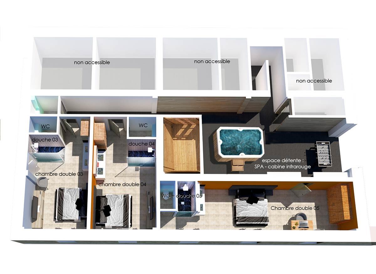 - 5 chambres doubles avec salle de bain individuelle ( dont 2 avec jacuzzis double )