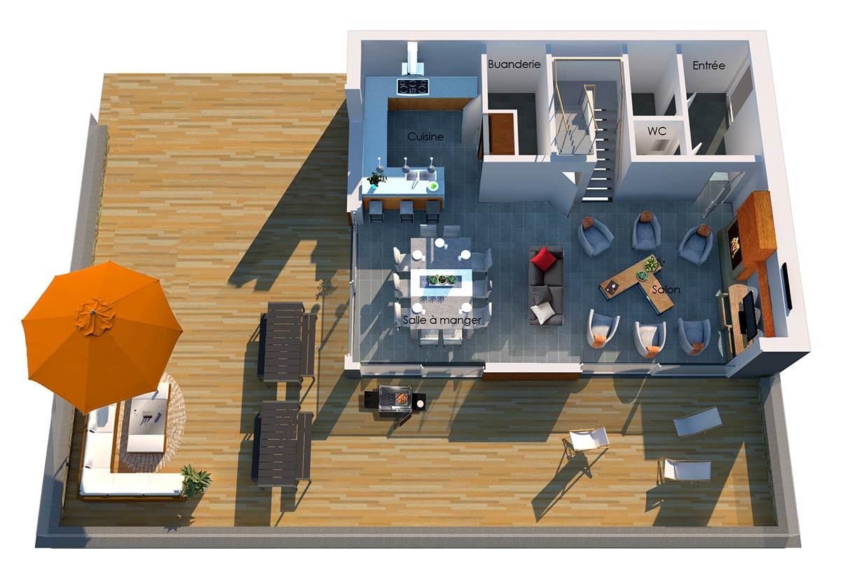 Chacun de ces gîtes hôteliers abrite 4 ou 5 chambres avec salles de bain individuelles dont 2 chambres avec bain jacuzzi pour 2 personnes, un espace de vie avec cuisine équipée, une salle de jeux avec kicker ou billard et un espace wellness.