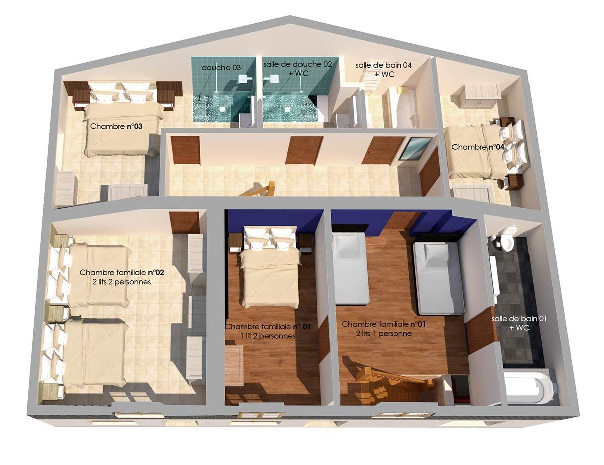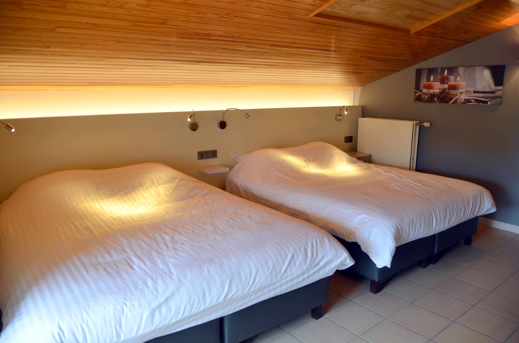 • 4 slaapkamers met afzonderlijke badkamer: twee met inloopdouche en twee met bad. Twee 2-persoonskamers, een gezinskamer met twee 2-persoonsbedden, een gezinskamer met een 2-persoonsbed en twee 1-persoonsbedden (een kamer met flatscreen-tv en Netflix)