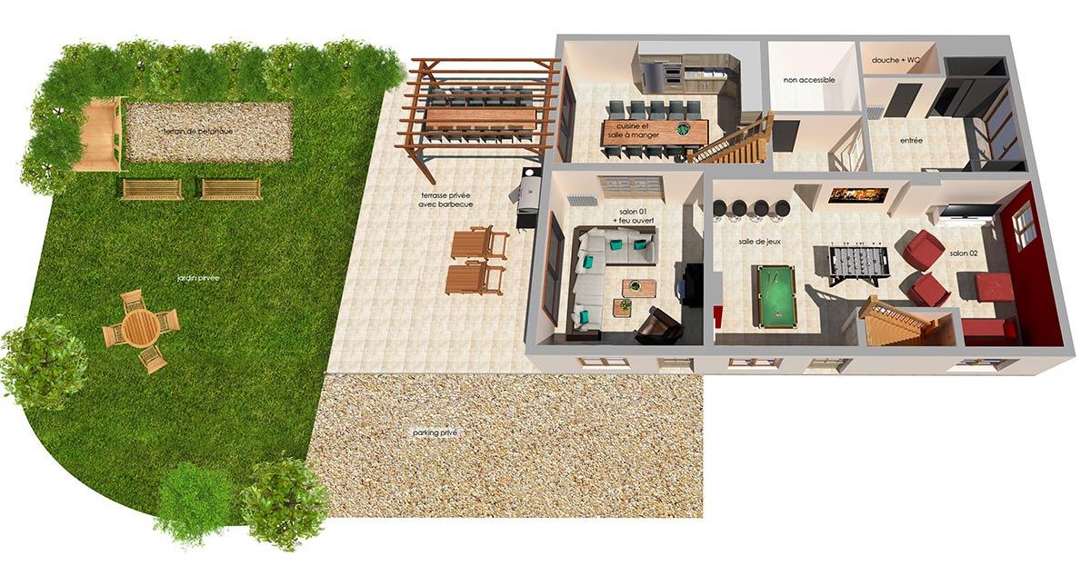 Deze typische Ardense vakantiewoning is voorzien van alle comfort: een super uitgeruste keuken met vaatwasser; living met houtkachel, flatscreen-tv met Netflix; eetkamer; speelzaal met biljart en tafelvoetbal; slaapkamers met eigen badkamer; terras met tuinmeubelen en barbecue; omheinde privétuin en wasruimte.