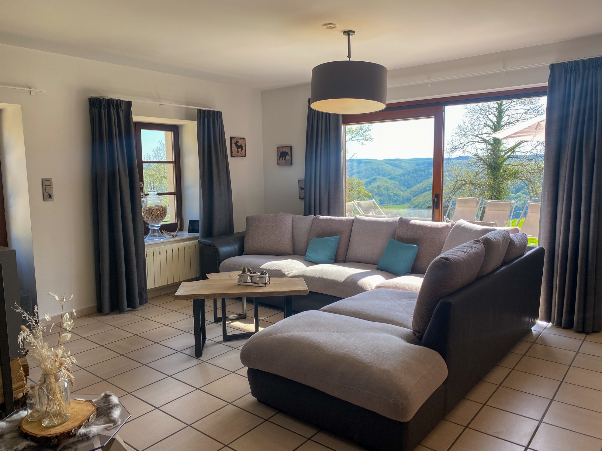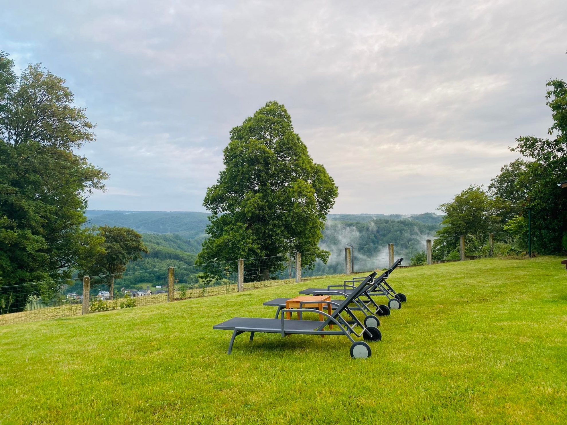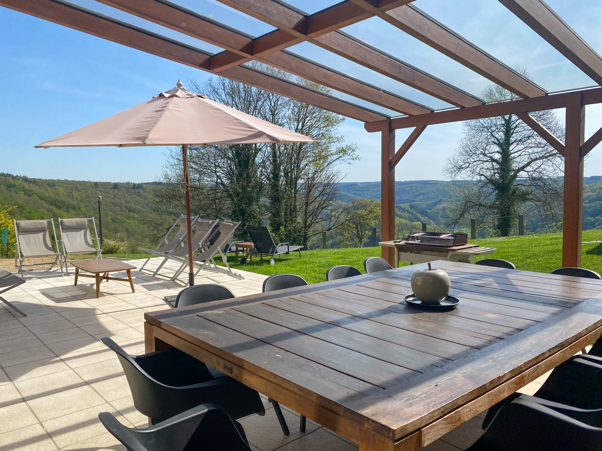 • Terras met direct zicht op het panorama van Frahan, barbecue, ligstoel, tuinset